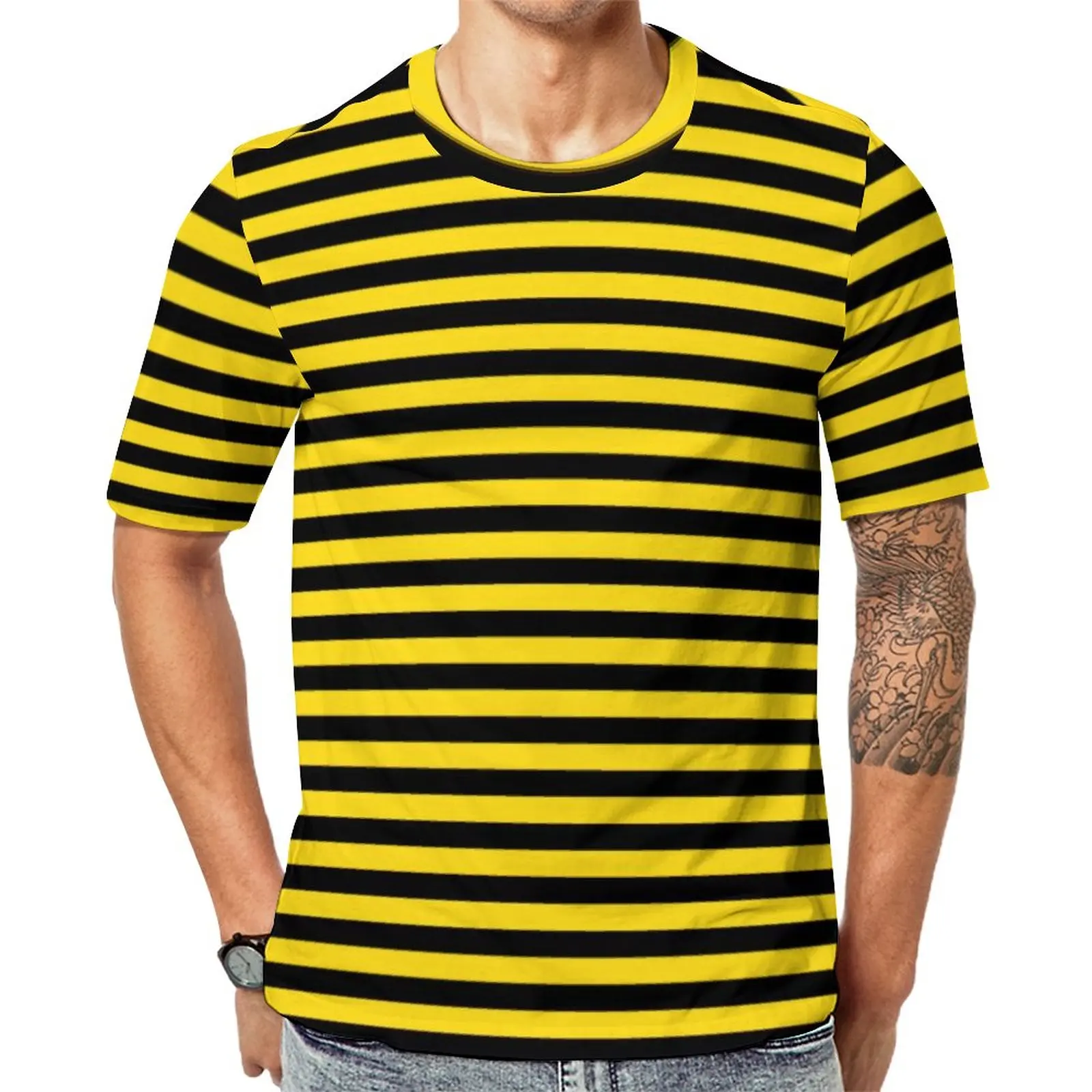 Bumble Bees T Shirt Men Yellow And Black Stripes Kawaii T Shirts Summer Cool Tees Short Sleeve Design Big Size Tops